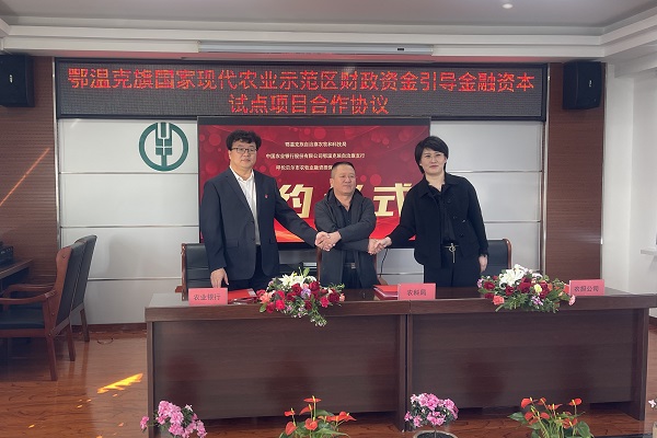 此次簽約儀式的成功舉行,標(biāo)志著財政資金撬動金融資本的又一創(chuàng)新模式正式落地,該項目依托國家現(xiàn)代農(nóng)業(yè)示范區(qū)項目資金作為貼息資金,充分發(fā)揮“政銀擔(dān)”合作優(yōu)勢,以“低費率+低利率+貼息”的多重惠農(nóng)政策,全面支持鄂溫克族自治旗轄內(nèi)農(nóng)牧民生產(chǎn)經(jīng)營資金需求,進一步緩解了鄂溫克地區(qū)農(nóng)牧業(yè)“融資貴、融資難”問題,保障當(dāng)?shù)剞r(nóng)牧業(yè)健康發(fā)展。同時,通過農(nóng)牧業(yè)資金貼息政策,嚴把準(zhǔn)入關(guān)口,將還款履約和政策引導(dǎo)融入到優(yōu)化鄂溫克旗信用環(huán)境的環(huán)節(jié)中,進一步助力牧區(qū)信用體系建設(shè)工作。此次合作也是促進農(nóng)牧業(yè)供給側(cè)結(jié)構(gòu)性改革和畜牧業(yè)產(chǎn)業(yè)化升級,推進鄂溫克旗鄉(xiāng)村振興產(chǎn)業(yè)發(fā)展有效落實的重大舉措,并對財政資金引導(dǎo)金融資本投入農(nóng)牧業(yè)具有重大意義。